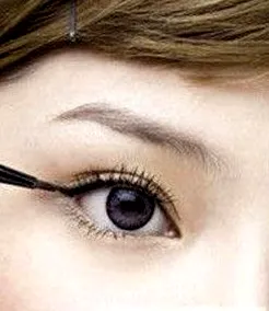 Step1:首先选择黑色的眼线膏,贴着睫毛内侧,勾画出细细的内眼线。
