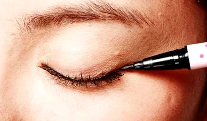 Step8:最后再用黑色眼线笔或眼线膏描画假睫毛的连接处,这样就可以遮盖粘贴的部位。