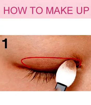 Step1:首先用眼影刷蘸取浅咖色眼影,在双眼皮的地方营造假双眼皮的效果,打底的面积要控制住,否则很难有层次感。