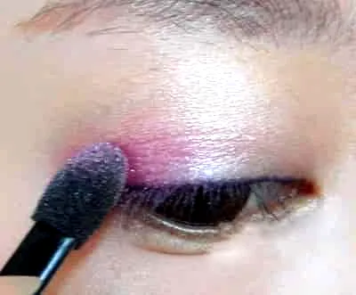 Step4:这次很特别的是,选择紫色眼线代替黑色眼线,沿着睫毛根部勾勒。