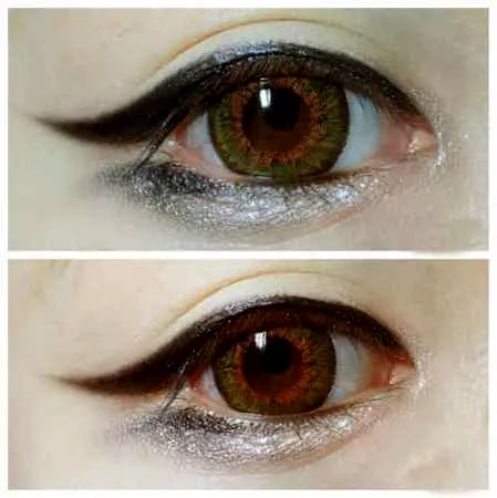 Step4:眼球中间黄线是用sleek658的4号闪银黑,眼尾和**是哑光的,纯粹觉得酱比较油层次感,眼球一下子就亮起来,用手指把上眼皮拉起来,先画**再画黄线。