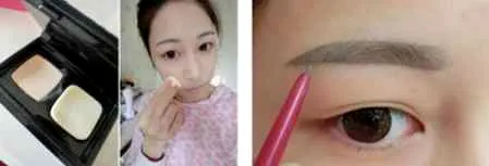 第二步:接下来是定妆的过程,粉饼、定妆必须要在半小时后妆才会开始渐渐变得自然起来。完成定妆后,再用眉笔描绘出眉型,建议先修下眉毛之后再上妆。