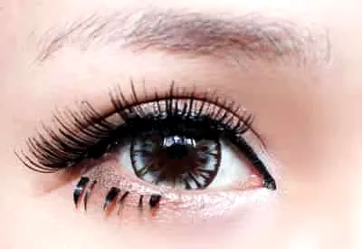Step8:找到日系的假睫毛,在睫毛根部粘贴起假睫毛,下假睫毛最好厉害睫毛根部0.1cm。