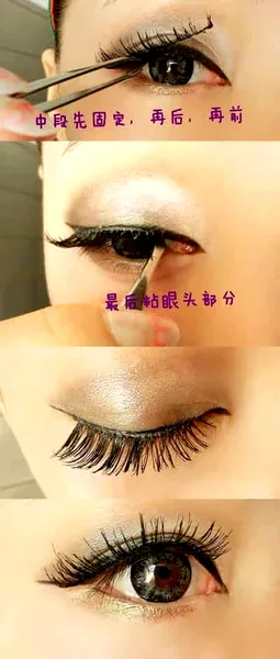 Step8:接下来粘睫毛,也是打造放射电眼感的关键,再好的眼妆,没有了睫毛就是没有了眼妆的灵魂。