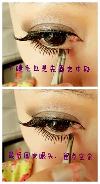 Step9:新手也可以把下睫毛剪成一段一段的,分开黏贴,加上眼线和眼影的修饰,性感的猫眼立刻显现。
