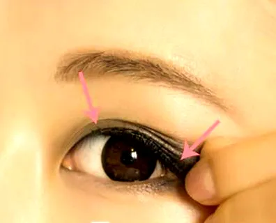 选择一款黑色眼线膏或者眼线液来描绘眼线,先延长眼尾部分加粗再往前蔓延,这样具有放大眼睛的效果。