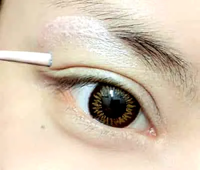Step7:首先选择珠光白眼影,蘸取少量后从眼窝中间向四周晕染开。