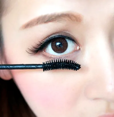 Step10:顾好了上睫毛,下睫毛是不能忽略的。用纤细型的睫毛膏,顺着下眼睑的睫毛根部往外刷,营造楚楚动人的感觉。
