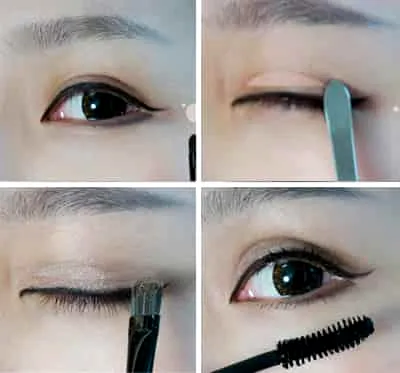Step6:内双女生可以在眼妆步骤中加一步——双眼皮贴,在眼珠的正上方粘贴起来,眼部看起来会更大。