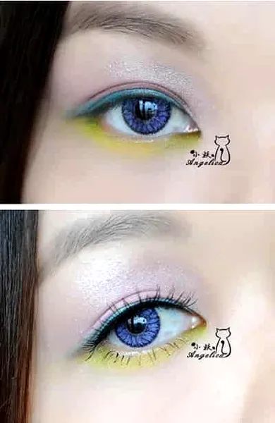 step3:下眼线,****均匀地涂在眼睛下方中间位置,眼头和眼尾用浅绿色点缀,接近色的衔接其实也可以增加眼部的立体感哦。