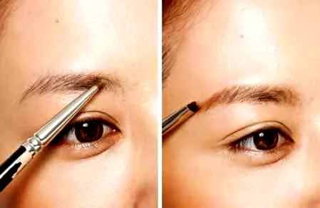 步骤3:眉粉填补眉间空隙,避开眉头,从中段开始用眉粉将眉毛间隙较稀疏的空间向眉毛外侧填满,营造自然眉型。