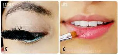 STEP 6:最后一步,涂**喜欢的红色唇膏。这款淡雅的蓝色眼线淡妆就完成了,你学会了吗?
