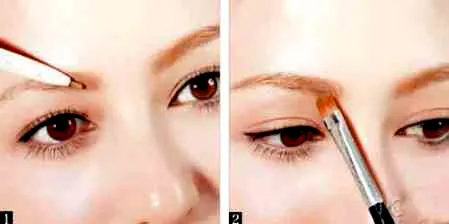 步骤一、眉笔补眉头前空隙,画出向前延伸的线条,眉头延伸后,眉型就完整。