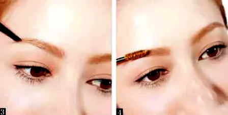 步骤四、用染眉膏做出浅色眉,眉头向眉尾先顺刷再逆刷,将眉毛充份染色,做出柔和感。
