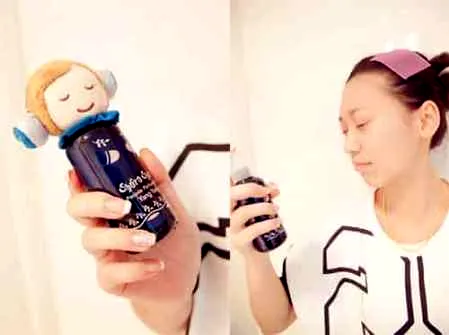 step1:由于现在是秋冬季节,所以MM们需要一款高保湿的化妆水,先用高保湿的定妆水喷洒于面部,喷洒均匀即可。