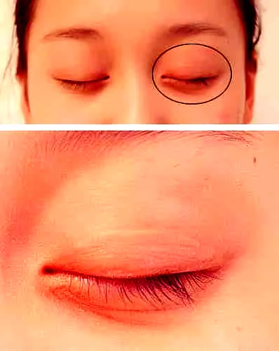 step4:然后就是贴双眼皮贴,模特选用的双眼皮贴是窄版,这种双眼皮贴比较方便,而且接近皮肤的颜色不容易看出。