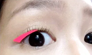 Step1:眼线的画法与裸妆不一样,不需要涂抹上BB爽,实际上只要涂抹上一层隔离霜,这样可以让妆容更容易持久就行。所以在画之前,先用浅颜色的笔,涂抹上眼角部分增加做底色处理。