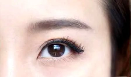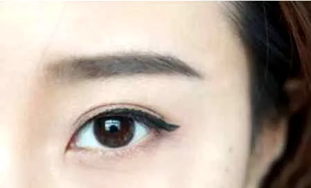 步骤四:用黑色眼线膏沿着睫毛根部画出一根流畅的眼线,在眼尾的位置拉长并上扬。