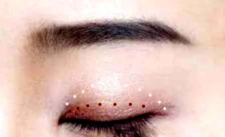 步骤三:用3号色眼影制造出渐变的效果,眼尾的位置也需稍微晕染一下。