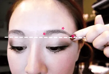 首先在剃一字眉之前要知道头、眉峰、眉尾的位置。眉头和眉尾要形成水平线,不要剃完后才发现一边高一边低。