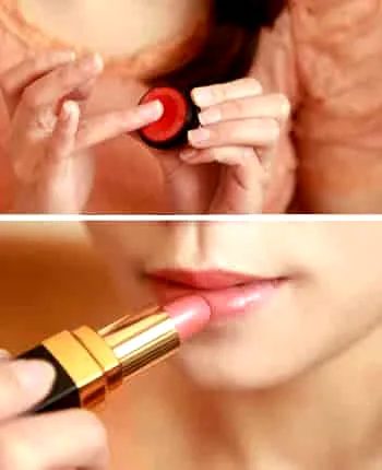 Step11:最后,选择和自己唇色相近的唇膏,在双唇部分轻轻涂一层即可。