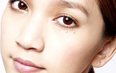 在涂抹遮瑕膏给眼部化妆的时候,手的动作一定要轻柔,因为眼周很容易产生皱纹,而且要用点压的方法进行涂抹,只要遮瑕膏与皮肤很好的结合即可,不要使太大的力量。