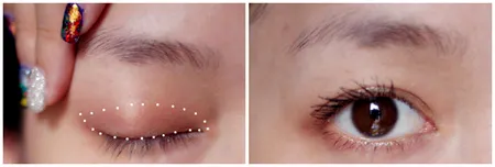 STEP 2:用大地色的眼影涂抹在眼皮上,轻轻晕染,淡妆不宜过浓,再用夹子夹一下睫毛。