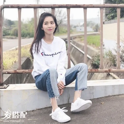 衣鞋同色是时尚的基础课,小白鞋搭配同色的卫衣,让你的夏季穿搭特别清纯时尚。