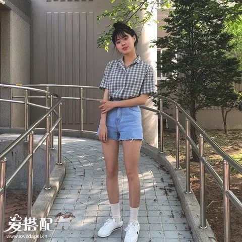 除了条纹,还有格子,一件清新的格子衬衫和小白鞋也很配哦!