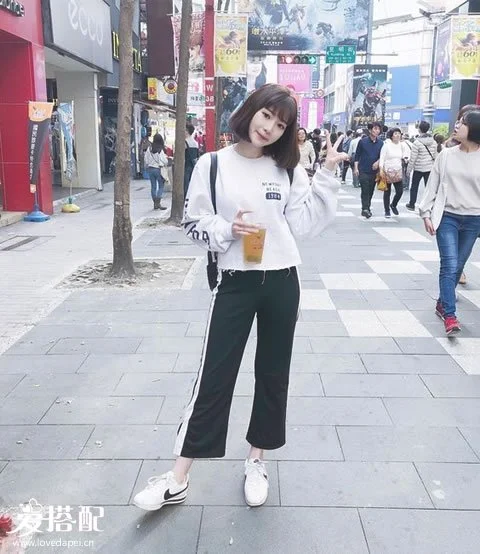 校服裤在2018还是在持续的流行,小白鞋搭配上九分校服裤和白色的卫衣,简约时尚,很有韩范的小清新有木有?