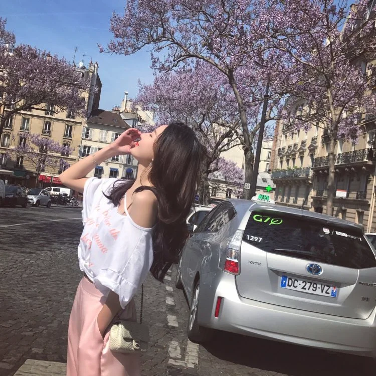 清凉透气的修身t恤尽显小家碧玉的淑女风,一点点花朵的点缀恰到好处。