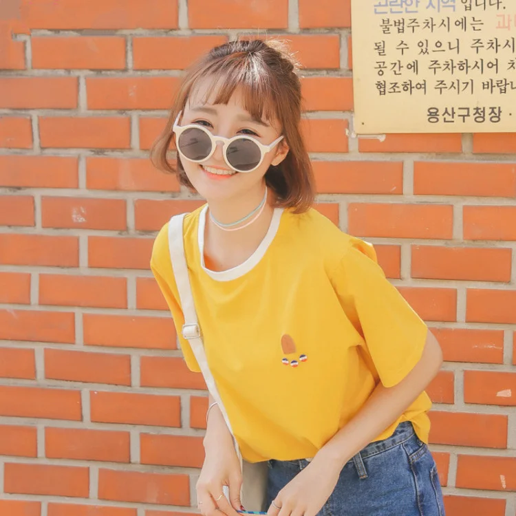 港风宽松棉体恤。 非常简洁但是也很有个性的一款t恤,透气又舒适,看到它总是想到了夏日的菠萝的冰棍,总是给人带来了丝丝两题。充满了热带风情的亮色T恤一定会让你这个夏天缤彩纷呈。
