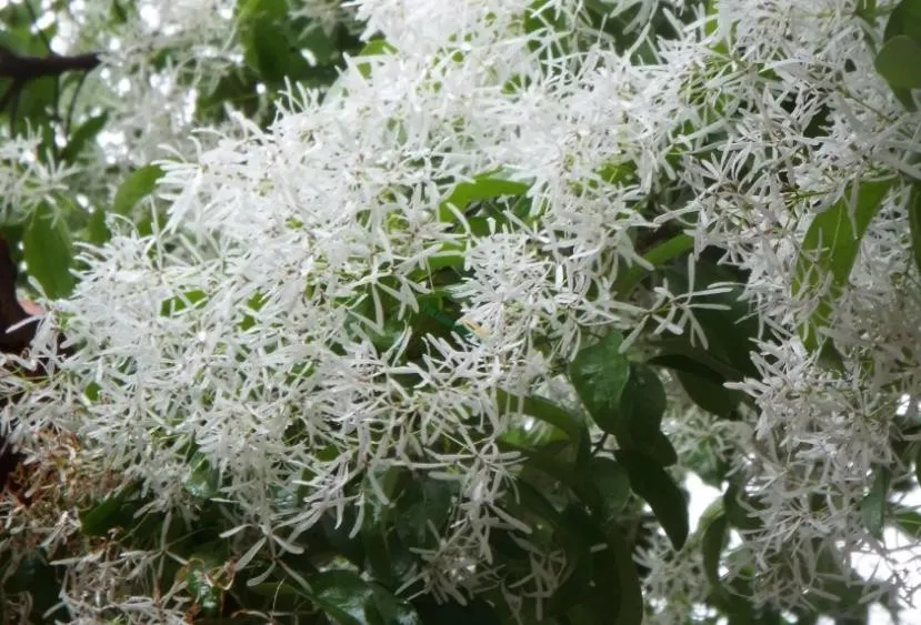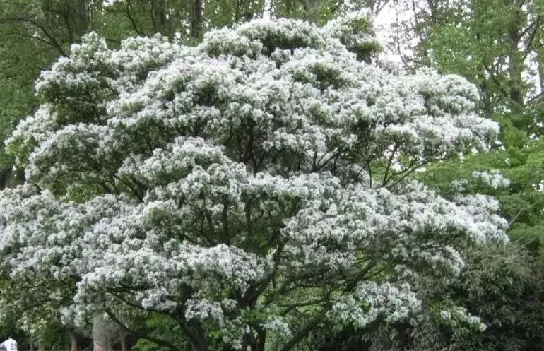 流苏树又被称为“四月雪”,从这一名称中就能看出流苏树的花颜色有多白了,流苏树的花期在每年的3到6月,开花的时候枝头布满白色的形似流苏的细小花瓣,整棵树就像白了头,也像一夜之间覆上了霜雪,非常好看。