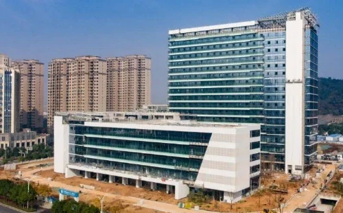 江夏区中医医院新院区,背靠大花山,毗邻武汉城际铁路纸坊东站和江夏市民之家,周边更有大花山户外运动中心、齐心水库和环山绿道,交通便利,环境优美,益于康养。