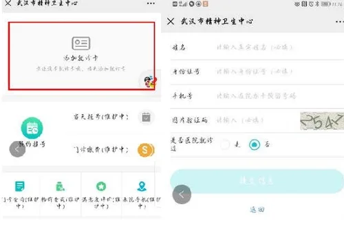 点击就诊服务-门诊服务-添加就诊卡-选择院区及门诊