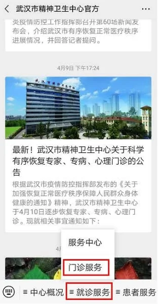 其中选择专家号,在就诊服务-门诊服务-预约挂号中选择,可选择精神科专家门诊、普通门诊、专病门诊、心里咨询门诊。