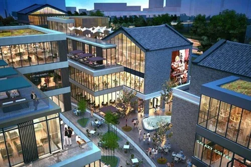 商业街区与市政园林相融合,融入古典元素与现代艺术,通过增设大量绿植、云雾大道的形式彰显生命力,打造具有生态活力、小资格调的购物场景。