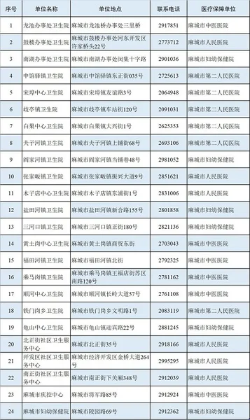 三、麻城市新冠病毒疫苗定点接种门诊信息一览表
