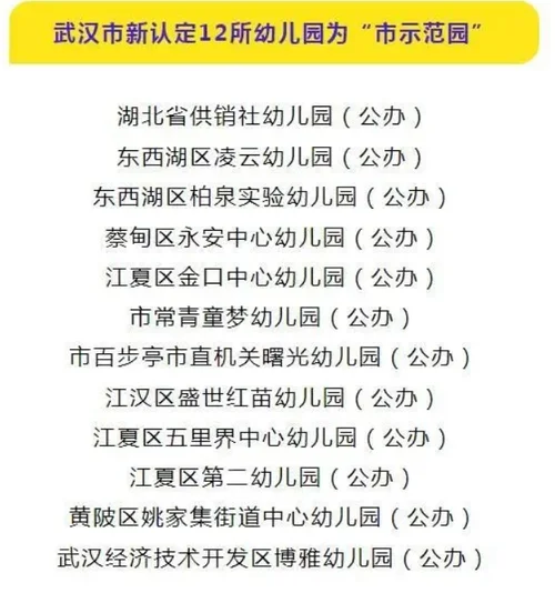 武汉市级示范幼儿园名单 (新增12所)