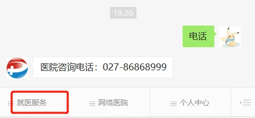 第一步:微信搜索“武汉市普仁医院“进入公众号,点击”就医服务“中的”预约挂号“。