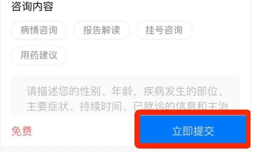 填写订单信息,并尽可能详细描述您的症状输入无误后,点击【立即提交】