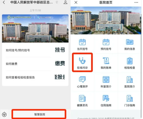 点击【智慧医院】进入医院首页并点击【在线问诊】
