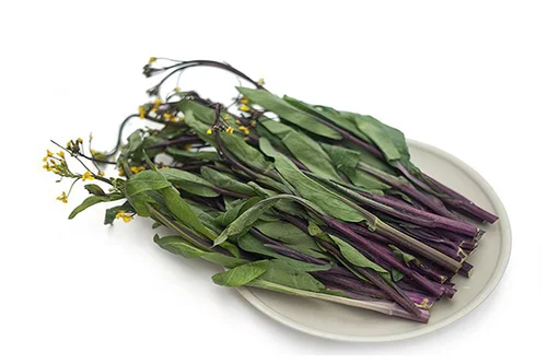红菜薹属于十字花科蔬菜,含有植物化学物异硫氰酸酯,有一定的预防癌症的作用。红菜薹颜色呈现出深红色,面含有花青素,花青素是一种强有力的抗氧化剂,能够保护人体免受自由基的损伤,有抗衰老的作用。红菜薹口感清脆,还带有淡淡的甜味,可以爆炒也可以做汤喝。