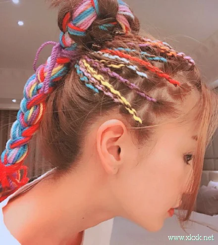 头顶变成一头的小辫子,上面的头发扎成丸子头,加上彩色发绳编织的麻花辫感觉又头发又边长了不少呢。