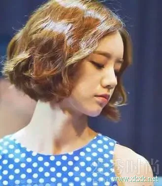 这样一款快要齐肩的蛋卷烫发发型图片,侧分发设计加上小波浪的烫发凸显时尚气息,短发蛋卷烫造型甜美吸睛。