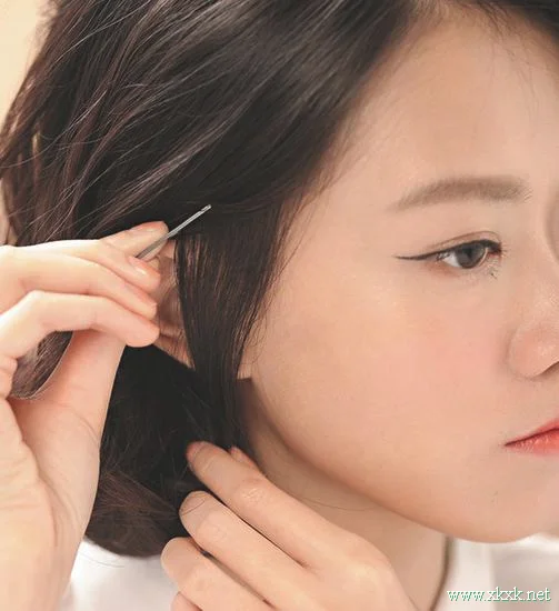 可以利用发卡或者直接将头发夹于耳后,但记住要留下几缕头发来修饰脸型,为面部制造阴影,从而使脸部看起来更小巧,并营造自然随性的感觉。