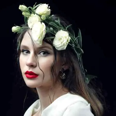 将发饰完成后的位置设定在偏左脸处,所以先抓出头顶上方偏左的一大束头发。