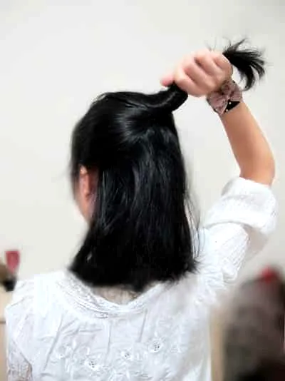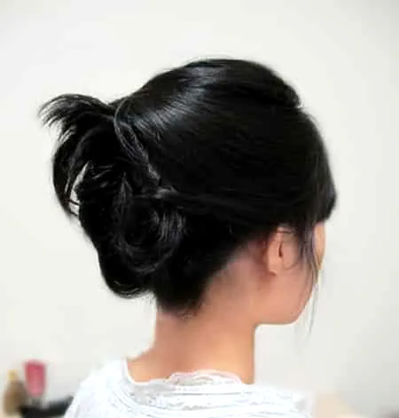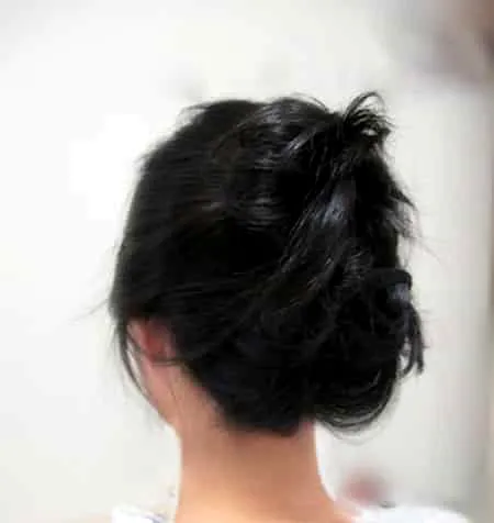 根据自己发量取适量头发,向上扭盘。