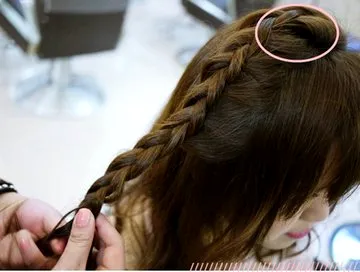 第五步:绑法很简单,就拉一大撮头发之后,照着图示往内卷,完全不需要什么技术,立刻就变成一个小包包啰。