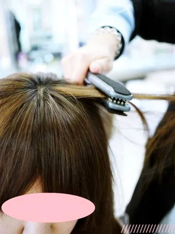 第二步:接下来利用电棒夹卷头发,为了绑起来看上去更有蓬松感。